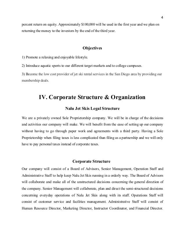 The business plan consists of a narrative body and financial worksheets. Business Plan Jet Ski Rental Service. The Location the Jet Ski Rental Business.
