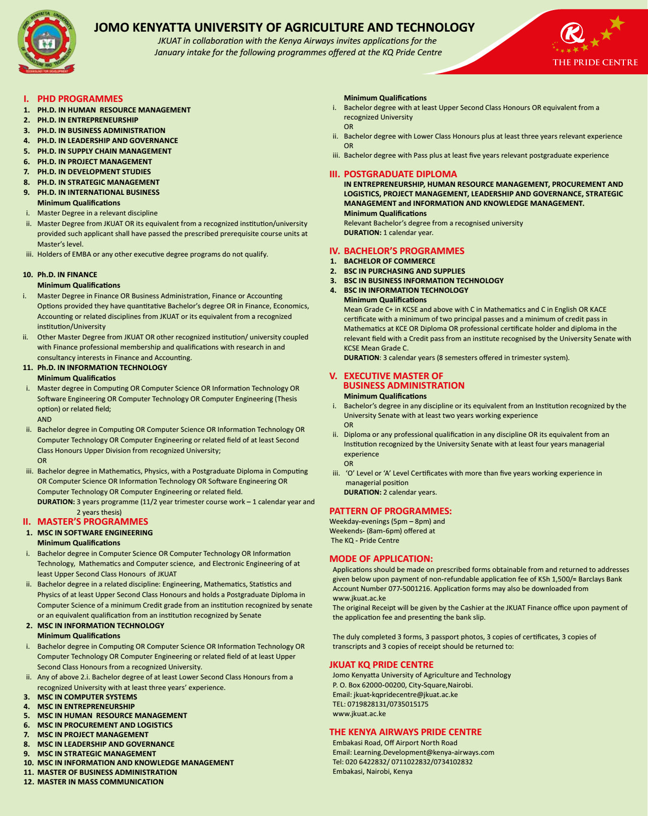 Jkuat On Twitter Kq Pride Center January 2016 Intake Https T Co 9ay1gu6flw Https T Co 8ncav1pry6
