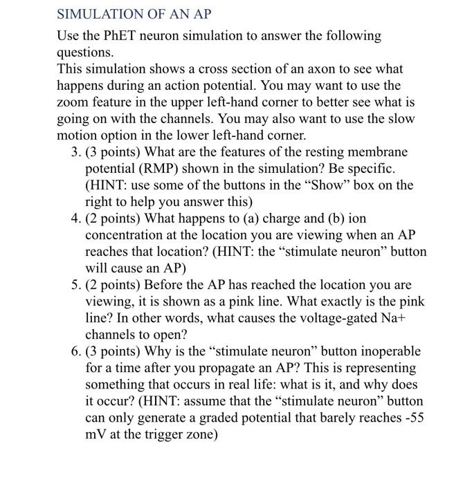 Solved Simulation Of An Ap Use The Phet Neuron Simulation Chegg Com