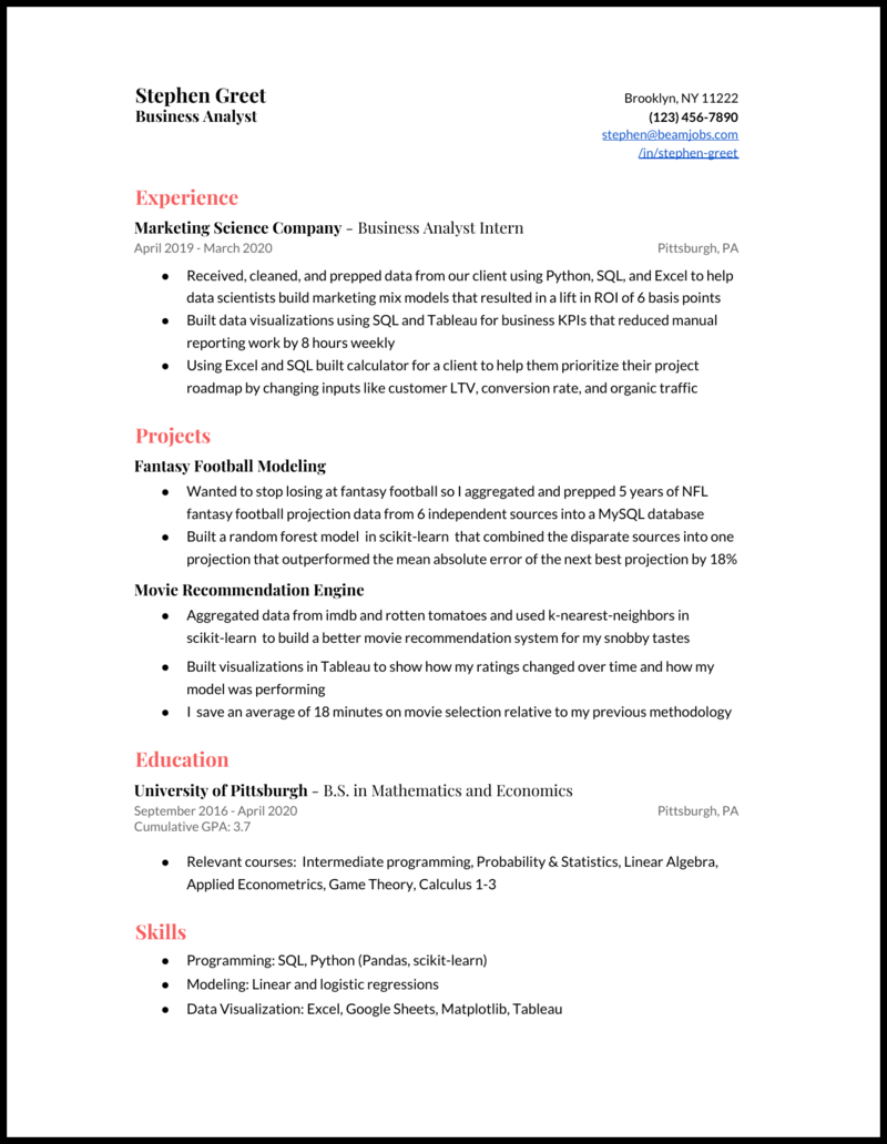 Entry Level Business Analyst Resume Example For 2021 Resume Worded