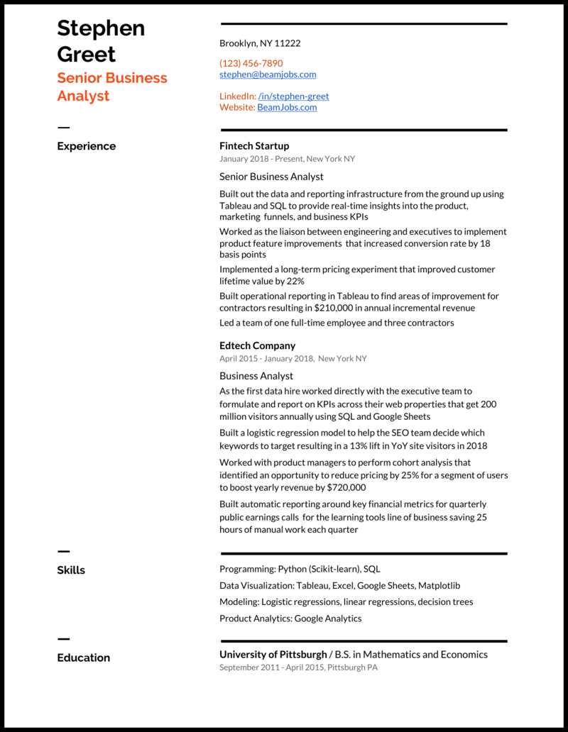 5 Business Analyst Resume Examples For 2021 Resume Worded