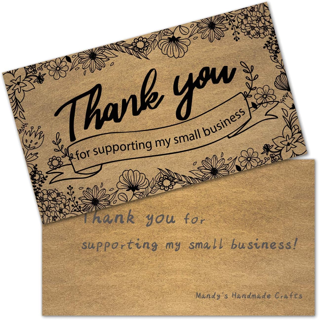 Amazon Com Thank You For Supporting My Small Business Card 2 X3 5 Elegant Floral Design 100 Cards Kraft Paper Office Products